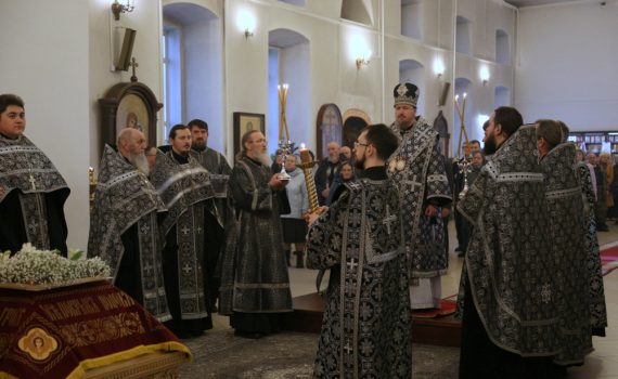10 апреля, в Великую Пятницу, день воспоминания Святых спасительных Cтрастей Господа нашего Иисуса Христа, епископ Уваровский и Кирсановский Игнатий совершил великую вечерню с выносом Плащаницы в Христорождественском кафедральном соборе города Уварово. Его Преосвященству сослужили клирики Христорождественского собора. Еще перед началом вечерни духовенство в алтаре полагает на престол Плащаницу — прямоугольный плат с изображением положения […]