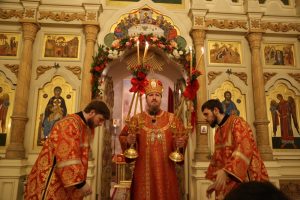 Пасхальная вечерня в Христорождественском кафедральном соборе города Уварово